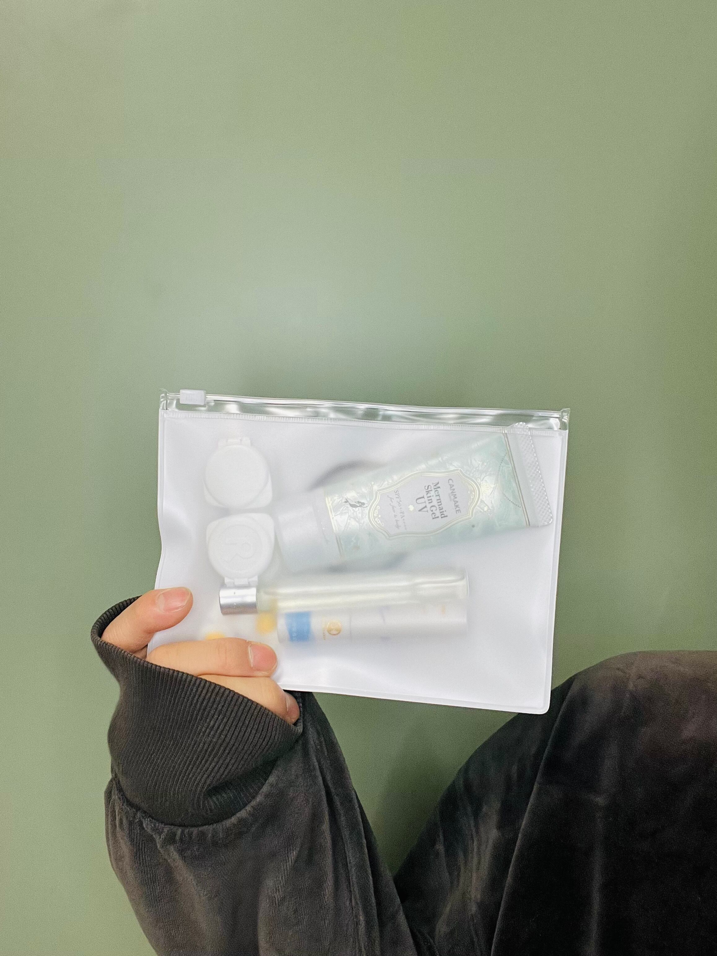 「しずく。」ファスナー付きビニールポーチは、旅行やお出かけする時にあなたの大切なものを守ってくれるPVCグッズです♪